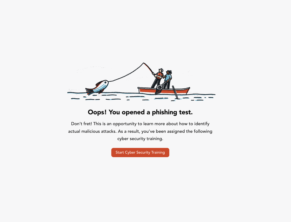 The page that employees will land on if they fail an Ethena phishing test varies slightly, depending on whether you've configured your campaign to send remedial training to folks who fail the test.